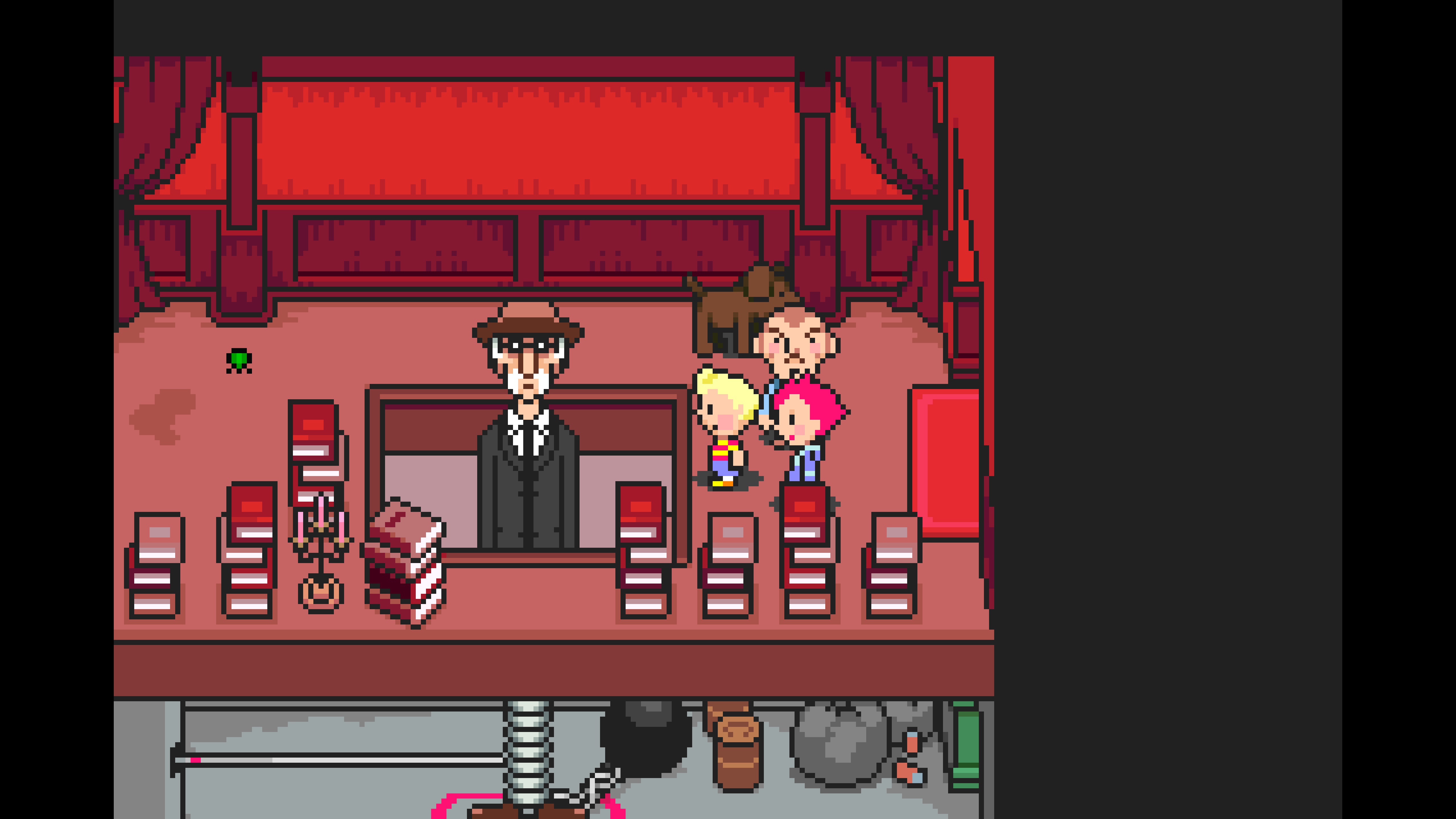 En lo más profundo de la tierra espera Claus, ante la última de las 7 agujas. El gemelo nunca llegó a vengar a su madre, en su lugar, fue capturado por el ejército de pigmask y llevado al laboratorio de quimeras. Ahí lo convirtieron en un robot que pasaría a ser el comandante de las tropas de Porky. Si nos fijamos, en el tercer piso del laboratorio, hay una sala detrás de unos cristales con una silla roja flanqueada por dos mesitas con sendos objetos que sugieren algún tipo de experimentación con el control mental. El juego nunca lo dice, pero sospecho que ese fue el lugar en el que convirtieron a Claus en la marioneta de Porky. Cuando los gemelos se encuentran se inicia el combate final. Como era de esperar en un Mother, este combate no será como el resto. En este caso, el avance es básicamente narrativo: solo hay que defenderse y curarse hasta que termine la escena. Este es el clímax de la historia y donde el juego más conmueve. Hemos esperado durante horas para ver qué ocurre en este encuentro.
