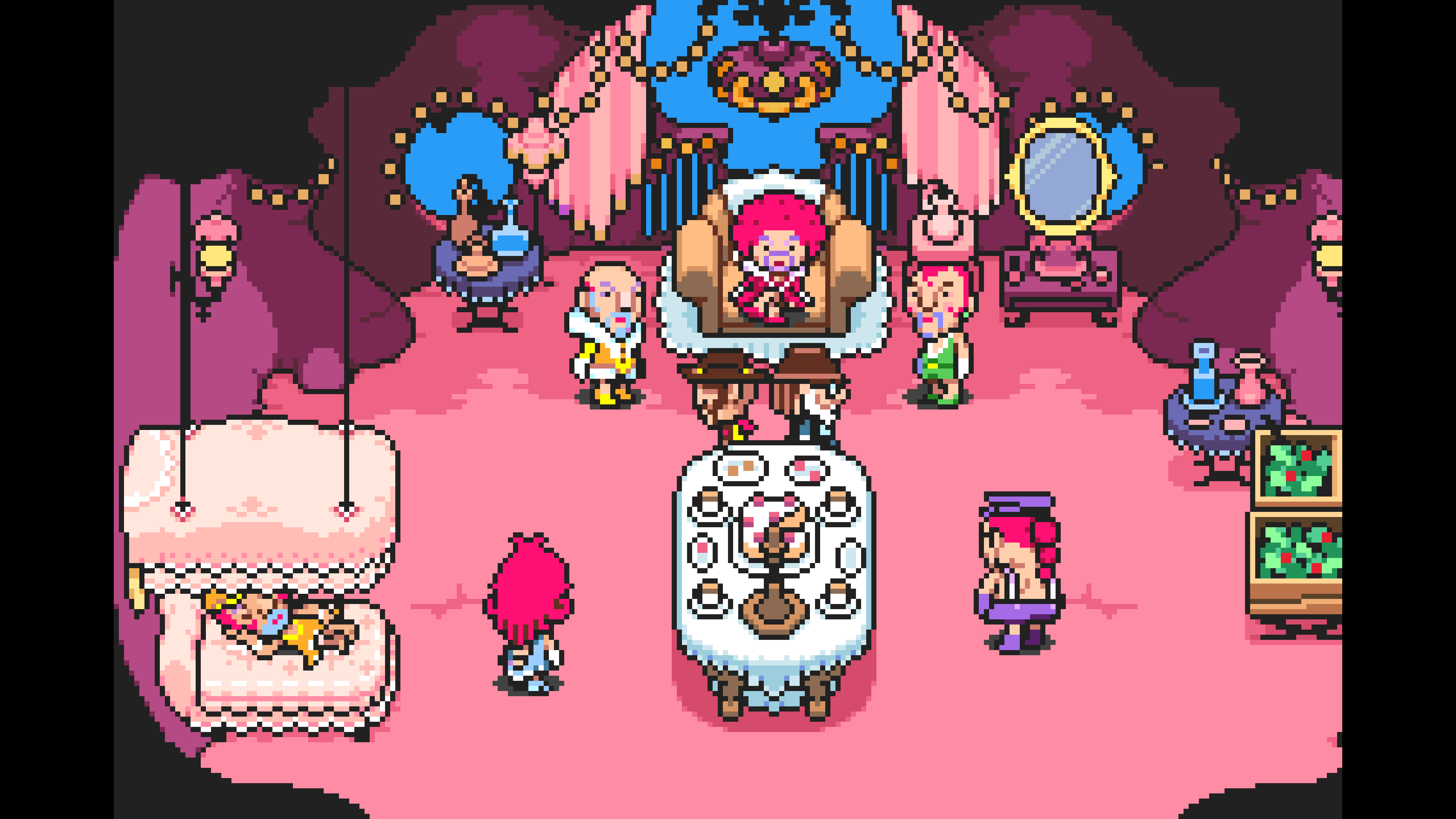 Los diálogos con los Magypsies están repletos de insinuaciones, no siempre de carácter sexual (eso ya depende de las ganas que le ponga cada uno), pero sí de forma que supure constantemente su ramalazo afeminado. Posiblemente no hay ni una sola conversación en todo el juego en la que no aparezca el símbolo de un corazón ♥︎ cuando ellos hablan, recurso tipográfico usado comúnmente por los nipones cuando quieren añadir una nota rosada al ambiente. Esto da lugar a escenas que pueden dejar al más malpensado tocado y hundido para el resto de la partida, porque, recordemos, Lucas es un niño, no tan pequeño como cuando empezó el juego, pero no tan mayor como para ser tildado de adolescente. Y con él pasan muchas cosas… Si tuviéramos que destacar una de las escenas más controvertidas sería, sin duda alguna, la de Lucas con Iona cuando se encuentran en el baño termal.